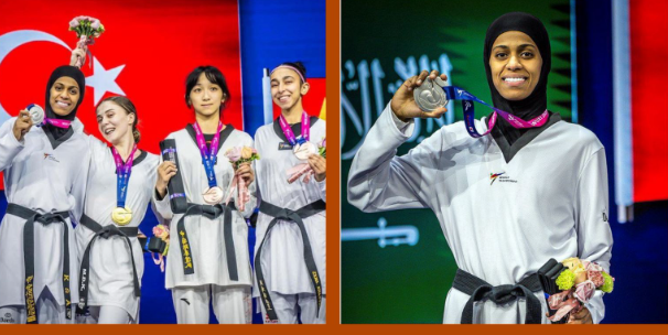 أضافت لاعبة المنتخب السعودي الأول للتايكوندو دُنيا أبو طالب إنجازًا جديدًا يُضاف إلى السجل الذهبي للرياضة السعودية، بعد أن حققت الميدالية الفضية في منافسات بطولة العالم للتايكوندو لوزن 53 كجم والمقامة في الصين، لتواصل تألقها العالمي وتؤكد حضور المرأة السعودية القوي في المحافل الدولية.