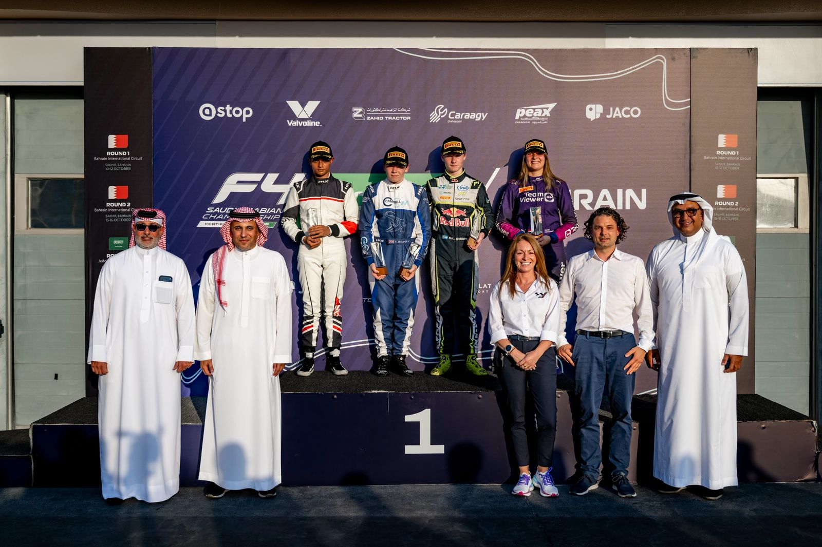 وفي ختام السباق، توج صاحب السمو الملكي الأمير خالد بن سلطان العبدالله الفيصل، رئيس مجلس إدارة الاتحاد السعودي للسيارات والدراجات النارية، وشركة رياضة المحركات السعودية، السائق البريطاني كيت بيلوفـسكي من فريق بيكس، بجائزة المركز الأول، فيما قدم سعادة الشيخ سلمان بن عيسى آل خليفة الرئيس التنفيذي لحلبة البحرين الدولية، جائزة المركز الثاني للسائق الهندي آري بانسال من فريق ماي كار، في حين سلم فواز القصيبي، السويدي سكوت كين ليندبلوم من فريق رد بُل، جائزة المركز الثالث، كما قدمت فيونا مورغان ريس، رئيسة الشؤون الرياضية للبطولة، جائزة أفضل متسابقة للهولندية اسمي كوسترمان، فيما سلم كلارو زيغان مدير السباق، جائزة أفضل سائق مبتدئ كيت بيلوفـسكي.