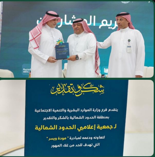 كرّم مدير عام فرع وزارة الموارد البشرية والتنمية الإجتماعية بالمنطقة الأستاذ خالد الرميخاني جمعية إعلاميي الحدود الشمالية كشريك نجاح إعلامي ونظير تعاونها ودعمها لمبادرة “مودة ويسر”.