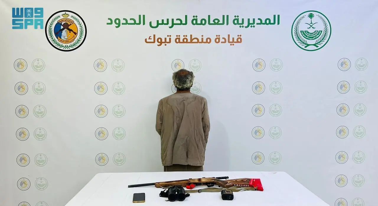 تمكَّنت الدوريات الساحلية لحرس الحدود، من ضبط مواطنٍ مخالفٍ لنظام البيئة، لارتكابه مخالفة الشروع في الصيد دون ترخيص بمحافظة حقل في منطقة تبوك، بحوزته بندقية شوزن، و(8) ذخائر حيّة، وتم تطبيق الإجراءات النظامية بحقه.