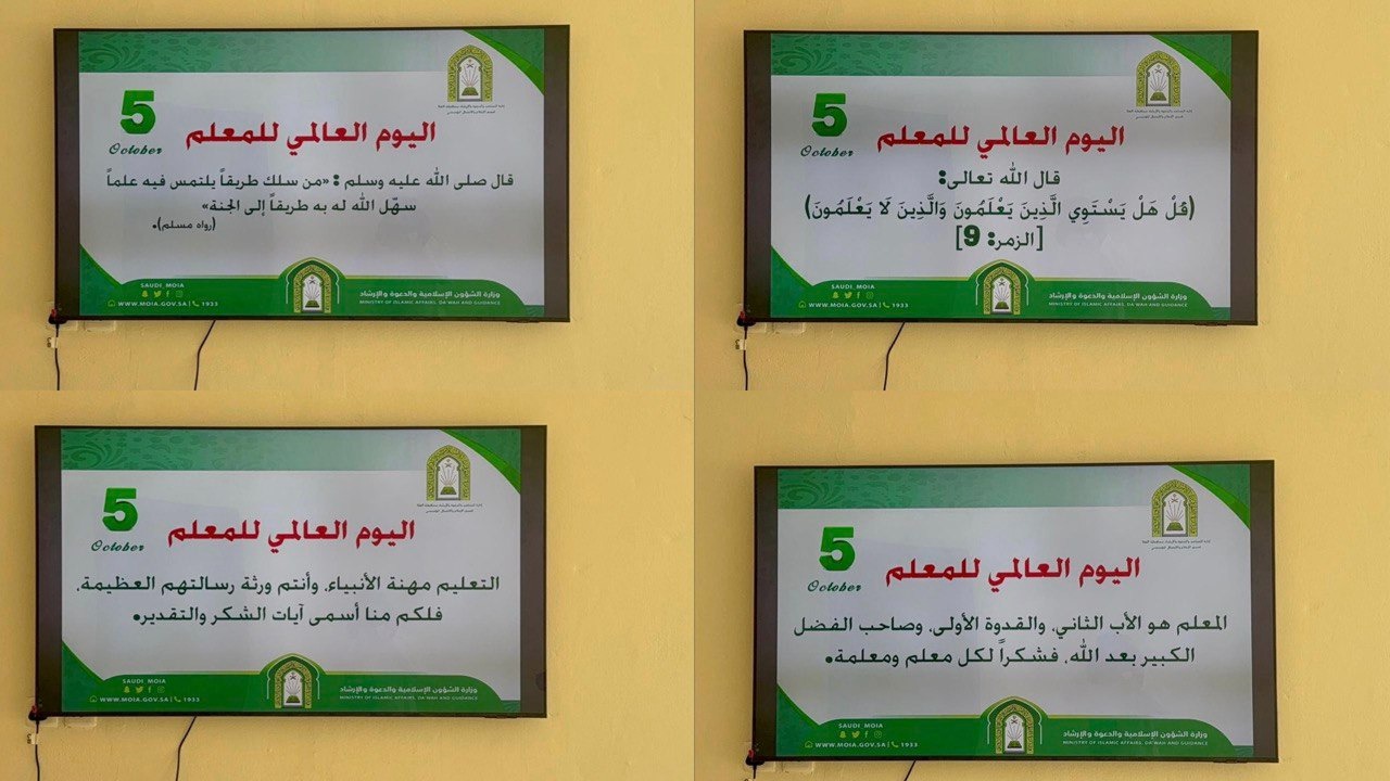 شارك فرع وزارة الشؤون الإسلامية والدعوة والإرشاد بمنطقة المدينة المنورة، ممثلاً بإدارة المساجد بمحافظة العلا، اليوم الأحد الثالث عشر من شهر ربيع الآخر ١٤٤٧هـ، في اليوم العالمي للمعلم الذي يصادف الخامس من أكتوبر من كل عام.