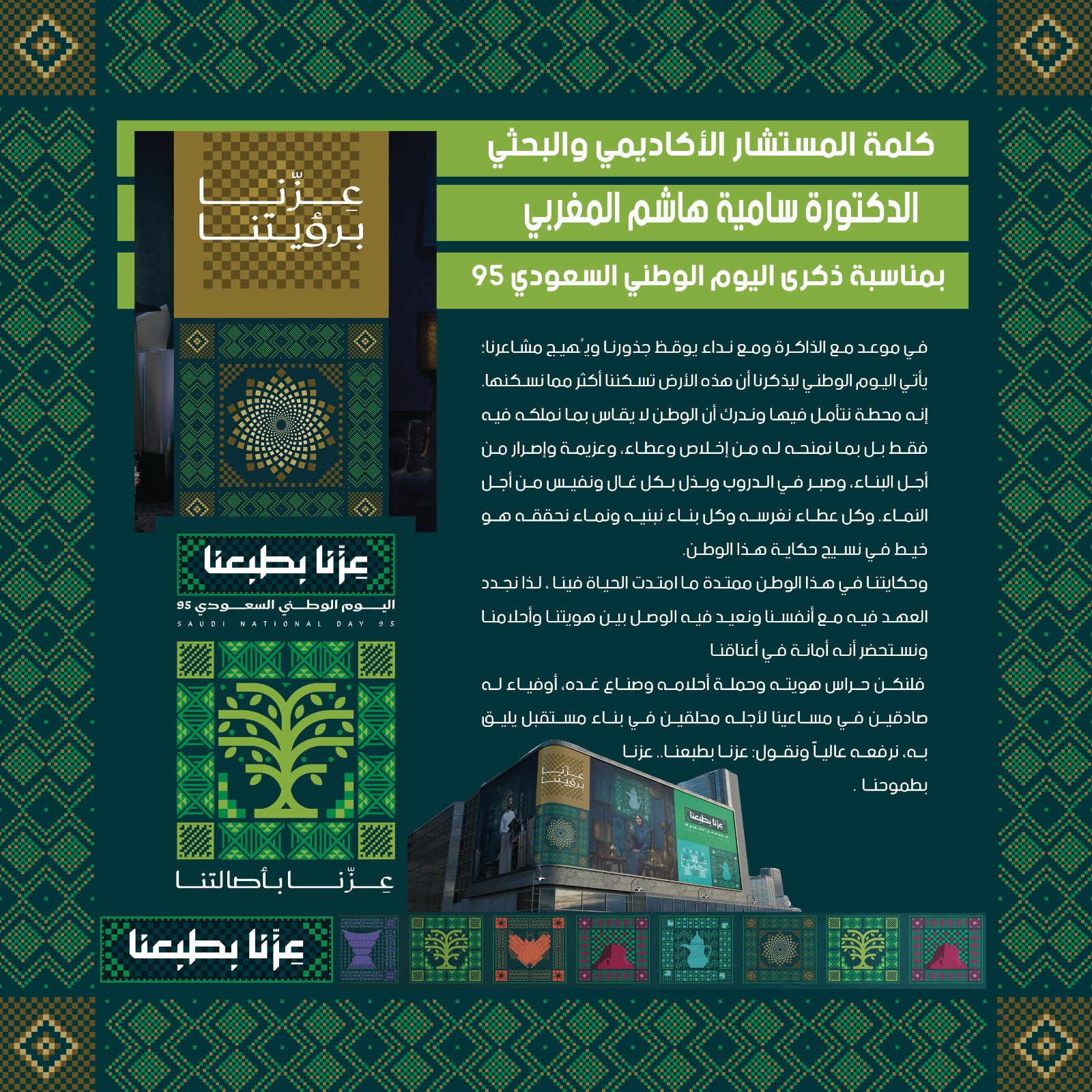 كلمة المستشار الأكاديمي والبحثي الدكتورة سامية هاشم المغربي بمناسبة ذكرى اليوم الوطني السعودي 95