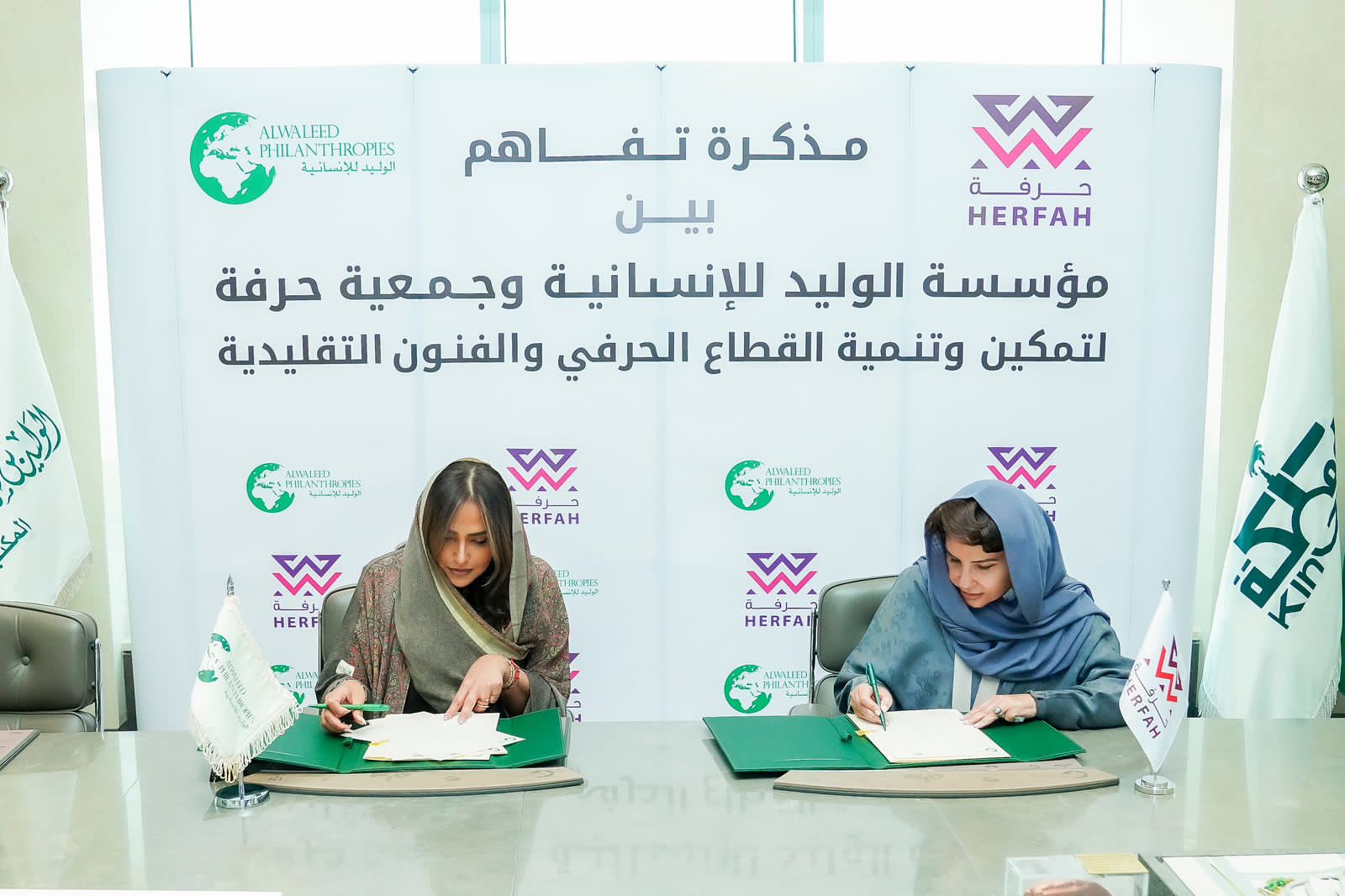 مؤسسة الوليد للإنسانية توقع مذكرة تفاهم مع جمعية حرفة لدعم وتمكين الحرفيات والحفاظ على التراث