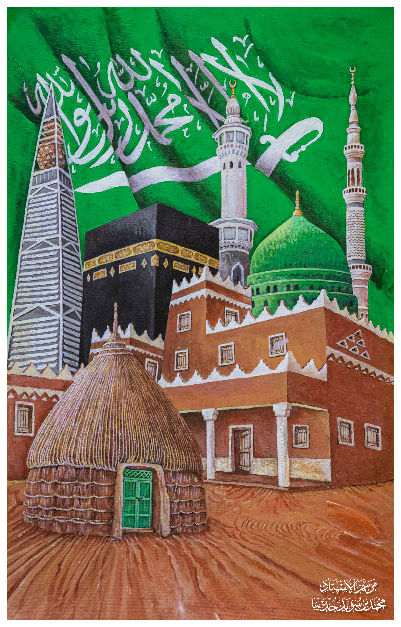 تحمل هذه اللوحة بين تفاصيلها حكاية وطن، يزهو بأصالته، ويفخر بتطوره، ويشرق بحضارته في العهد السعودي الزاهر.