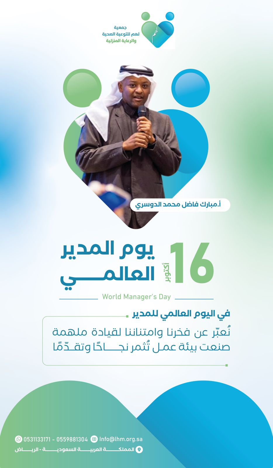 هذا التكريم لم يكن احتفالًا بيومٍ عالمي فحسب، بل كان احتفاءً برجلٍ جعل من الإدارة رسالة، ومن القيادة فنًا، ومن كل يومٍ فرصةً لصناعة الأثر.