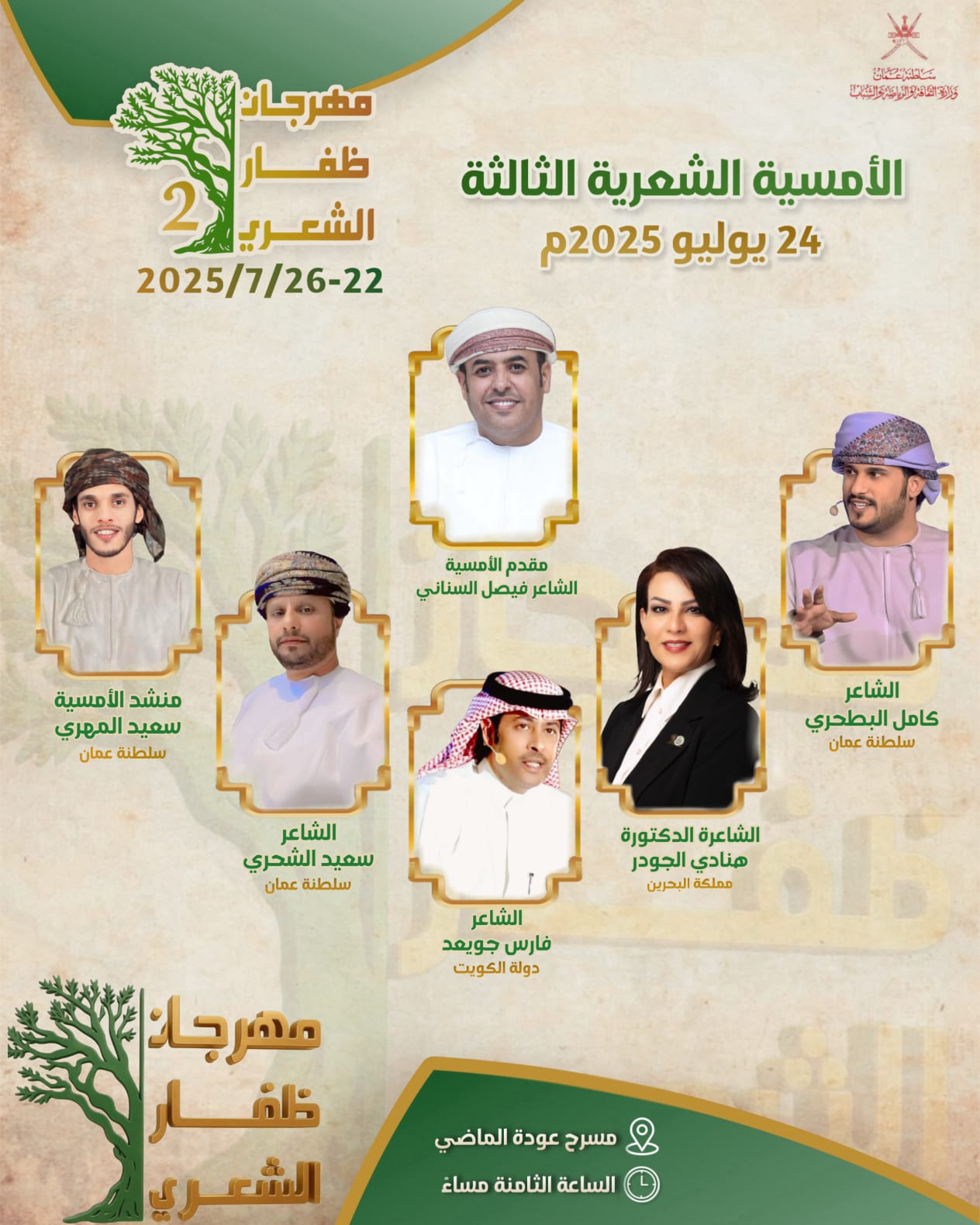 “ياحي بكم” بمشاركة ٢٠ شاعر وشاعره من مختلف دول الخليج بمهرجان ظفار الشعري الثاني
