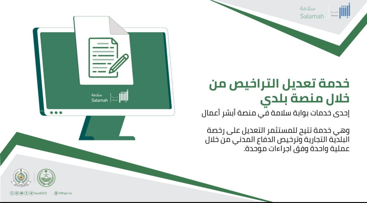 الدفاع المدني يتيح خدمة تعديل التراخيص من خلال منصة بلدي عبر منصة “أبشر أعمال”