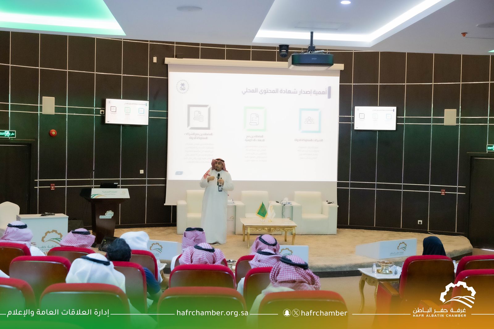 غرفة حفرالباطن وهيئة المحتوى المحلي والمشتريات الحكومية ينظمان ورشة عمل بعنوان “لائحة تفضيل المحتوى المحلي”