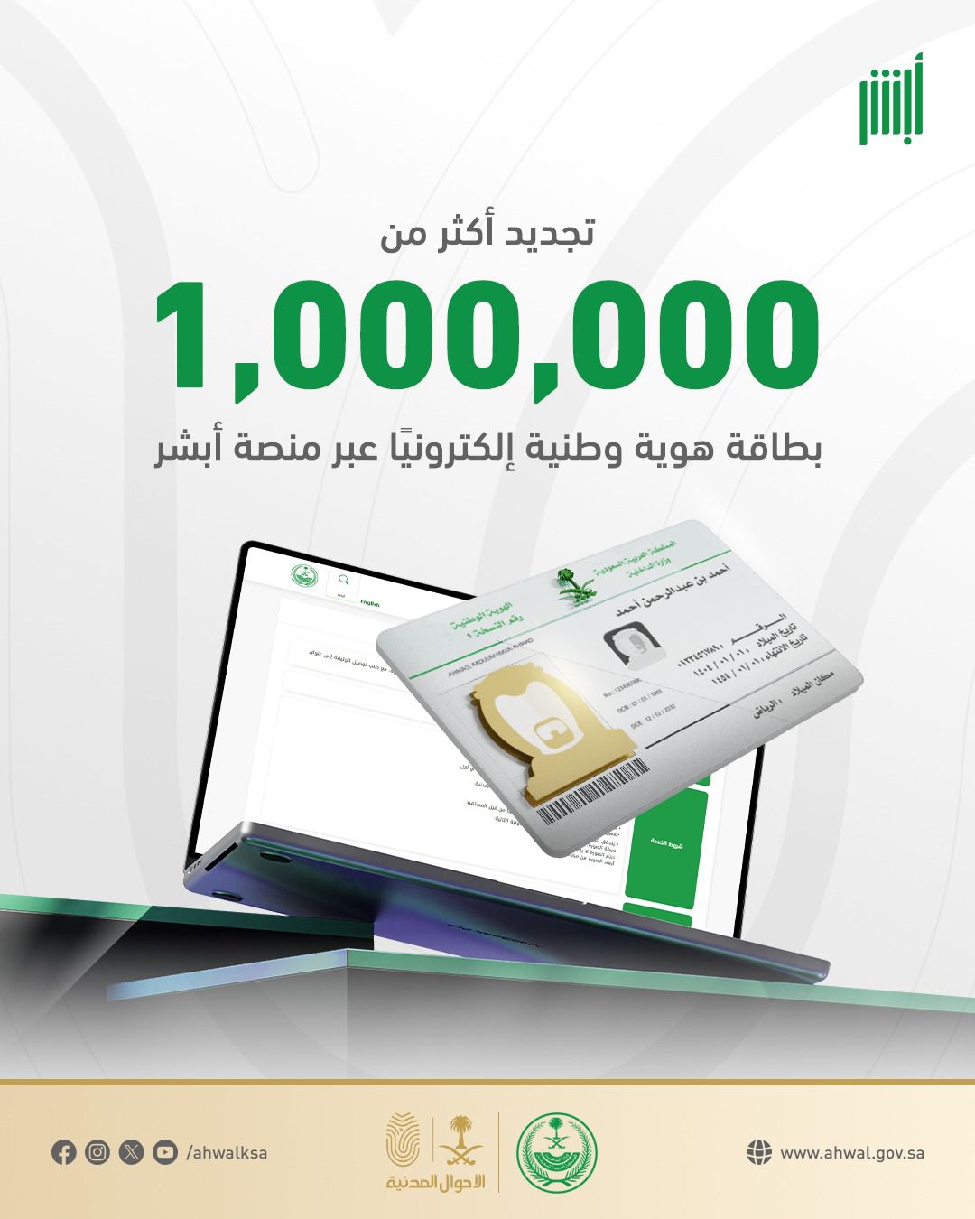 وزارة الداخلية تنفّذ أكثر من مليون عملية تجديد بطاقة هوية وطنية عبر منصة أبشر