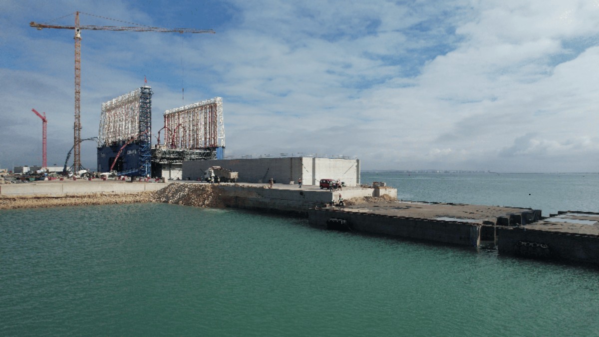طوّرت الشركة منشأة ثابتة جديدة لضخّ الخرسانة إلى رصيفها العائم المتخصص ببناء الحواجز البحرية، المعروف باسم Kugira.