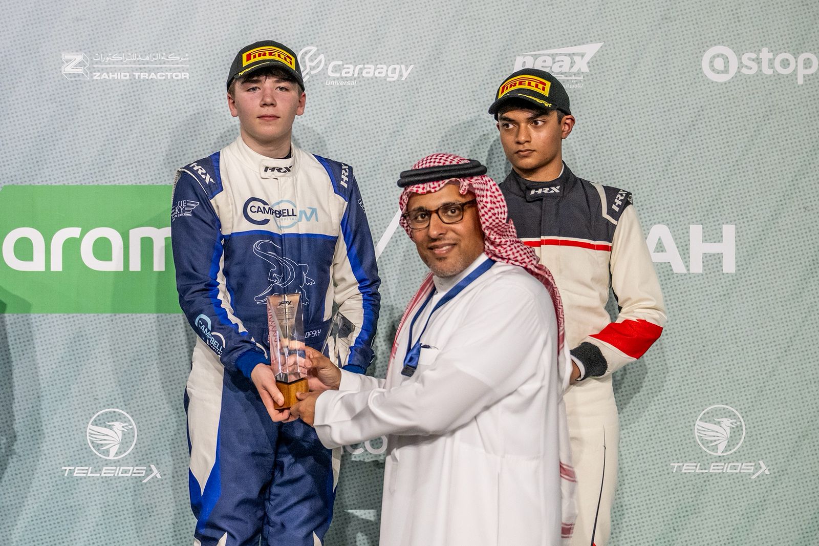 وعقب نهاية السباق توج صاحب السمو الملكي الأمير خالد بن سلطان العبدالله الفيصل، رئيس مجلس إدارة الاتحاد السعودي للسيارات والدراجات النارية، وشركة رياضة المحركات السعودية، البريطاني كيت بيلوفسكي سائق فريق بيكس بالمركز الأول، والهندي آري بانسال سائق فريق ماي كار بالمركز الثاني، واللبناني كريستوفر فغالي من فريق ريد بُل بالمركز الثالث، كما نال بيلوفسكي جائزة السائق المبتدئ، في حين فازت الهولندية نينا جادمان من فريق فالفولين بجائزة أفضل متسابقة