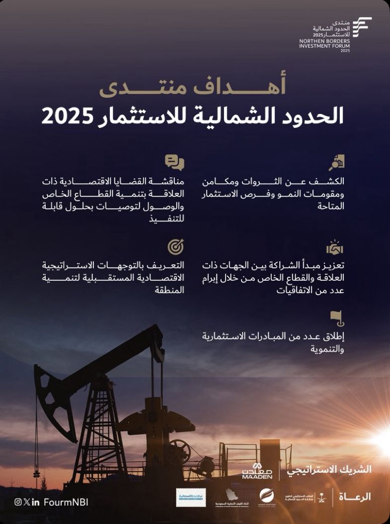 منتدى الحدود الشمالية للاستثمار 2025 يطرح أكثر من 240 فرصة بقيمة تتجاوز 40 مليار ريال