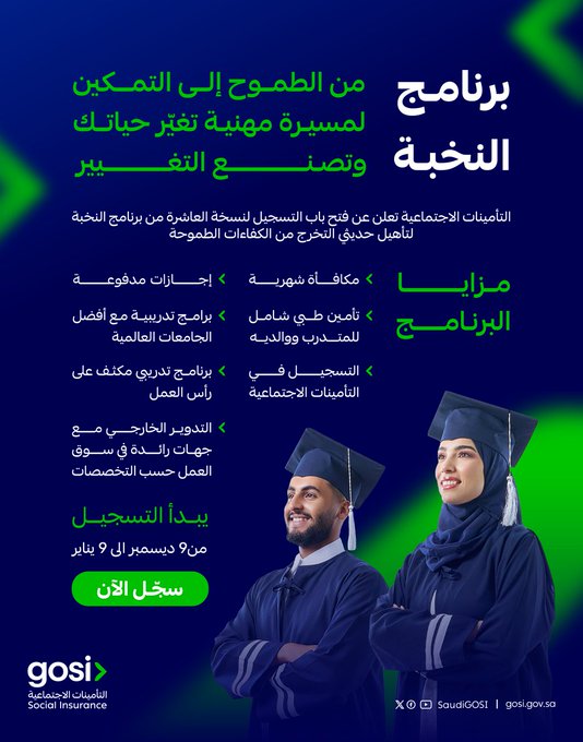 «التأمينات» تعلن فتح باب التسجيل في النسخة العاشرة من برنامج «النخبة» المنتهي بالتوظيف