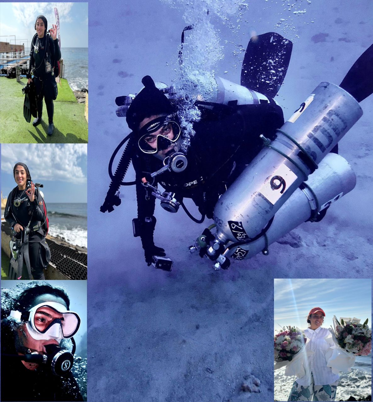 ، و 200 غوصة تقنية، وأتمت 5 غوصات تخطت فيها عمق 80 متراً، إلى جانب برامج تدريبية تشمل دسكفري بالمسبح وإعادة تنشيط للغواصين ، وتؤكد أنها لا تزال في بداية طموحها، وأن القادم سيكون أكبر.