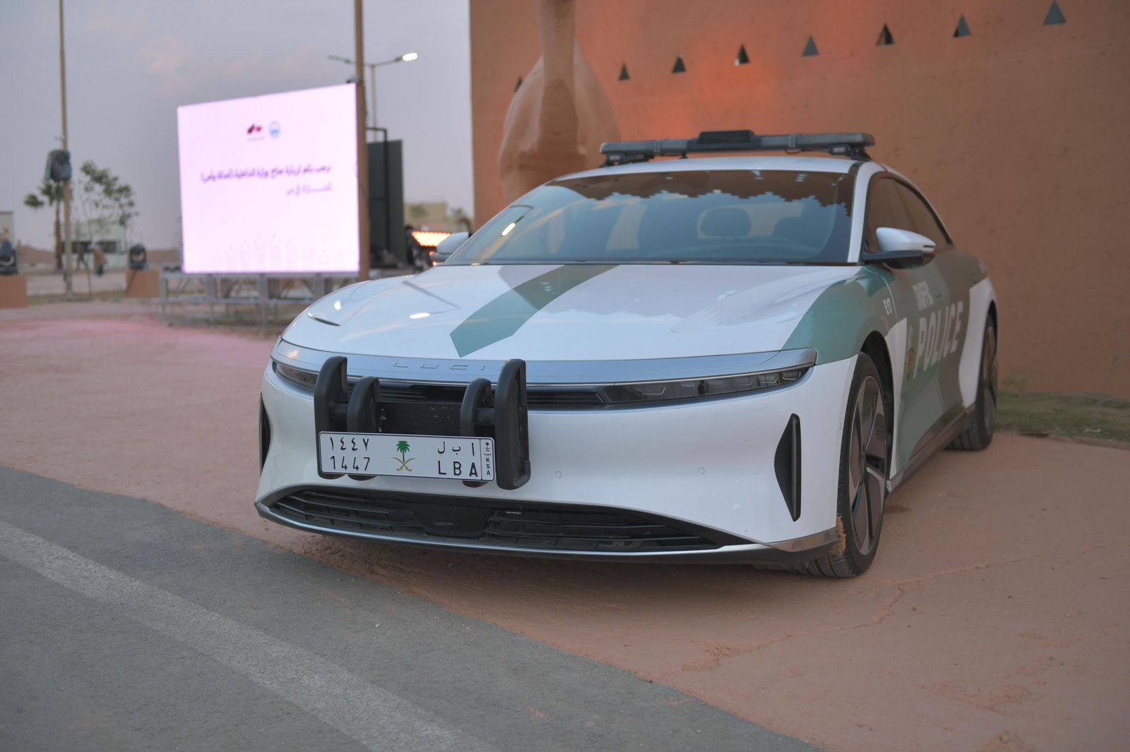 استوقفت لوحة «أ ب ل 1447» زوار معرض وزارة الداخلية المقام ضمن فعاليات مهرجان الملك عبدالعزيز للإبل في الصياهد، بعد ظهورها على المركبة الأمنية الكهربائية «لوسيد»، في مشهد لافت حمل دلالات رمزية تعكس هوية المهرجان وارتباطه بالموروث الوطني.