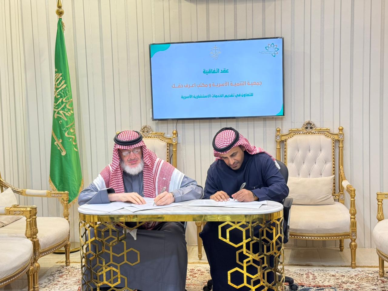 وتهدف هذه الشراكة إلى التعاون في مجال التوجيه والإرشاد الأسري، إلى جانب تقديم الخدمات القانونية ذات الصلة بالقضايا الأسرية والاجتماعية، وفق أسس مهنية ونظامية تضمن جودة الخدمة وتحقيق المصلحة العامة.