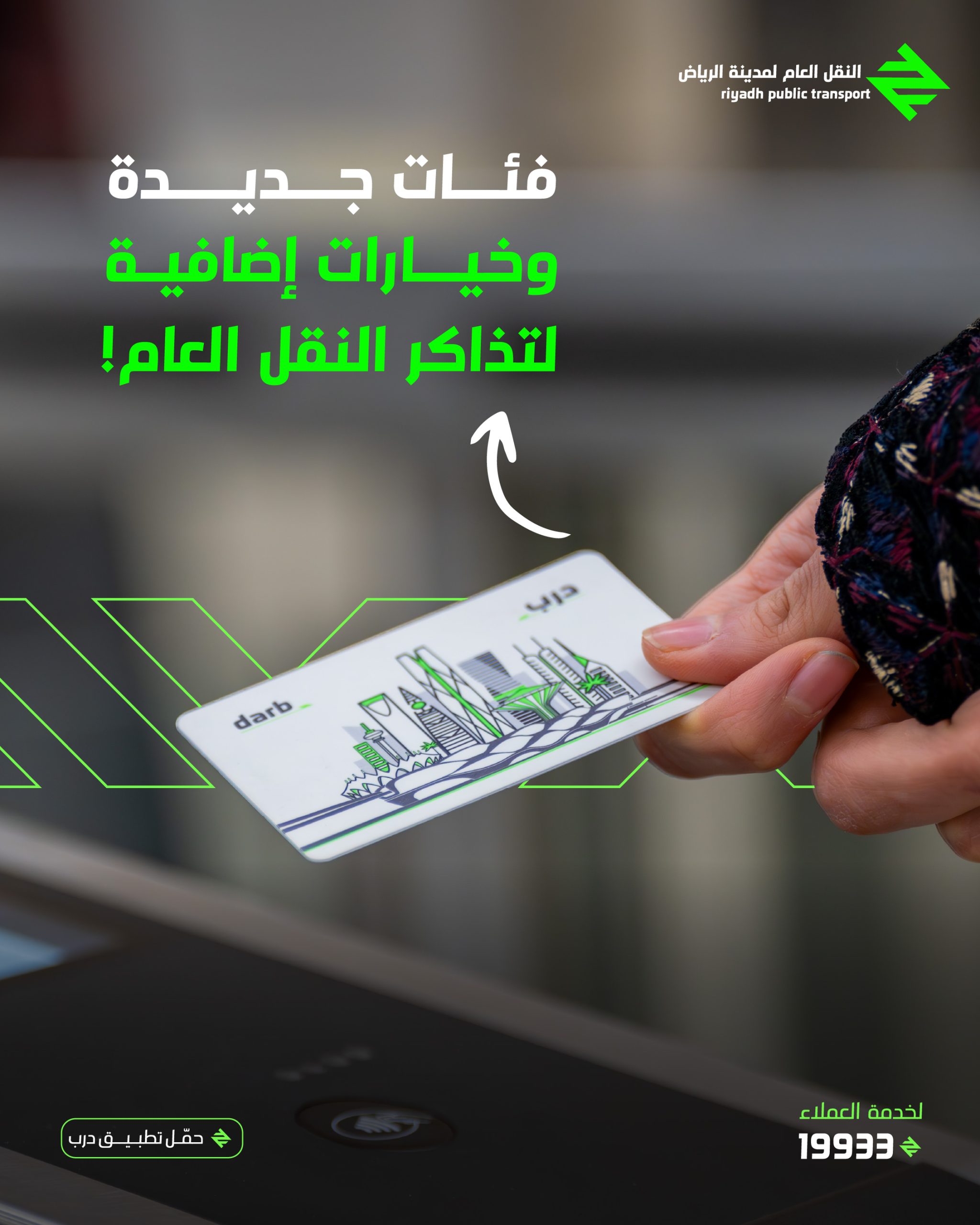 كما أعلن عن طرح التذاكر الفصلية الدراسية للطلاب، والمتاحة لطلاب المدارس والجامعات، بصيغتيها الرقمية والبلاستيكية، ضمن الفئة العادية فقط، وبقيمة 260 ريالًا، وبصلاحية تمتد لأربعة أشهر من تاريخ التفعيل، لتغطي فصلًا دراسيًا كاملًا.