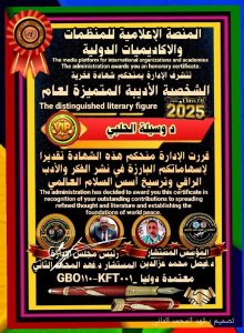 منحت الدكتورة وسيلة محمود الحلبي شهادة فخرية متميزة معتمدة دوليا للشخصية الأدبية المتميزة لعام 2025