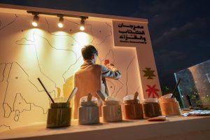 وقدّم الفنان علي النفيعي، أحد أبرز الأسماء في فن الجداريات المعاصرة، تصميم الرسومات بأسلوب يمزج الحس الشعبي بالخيال البصري، ويقرّب الزائر من جماليات المكان عبر مشاركة تفاعلية مباشرة.