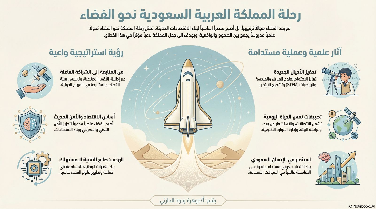 وخلاصة القول، أرى أن رحلة المملكة نحو الفضاء تمثل نموذجًا للتحول العلمي المدروس، الذي يجمع بين الطموح والواقعية، ويضع الإنسان السعودي في قلب المشروع المعرفي. ومع استمرار الاستثمار في البحث والتطوير وتمكين الكفاءات الوطنية، فإن المملكة مؤهلة لأن تكون لاعبًا مؤثرًا في مستقبل علوم الفضاء، لا مستهلكًا للتقنية فحسب، بل مساهمًا في صناعتها وتطويرها.