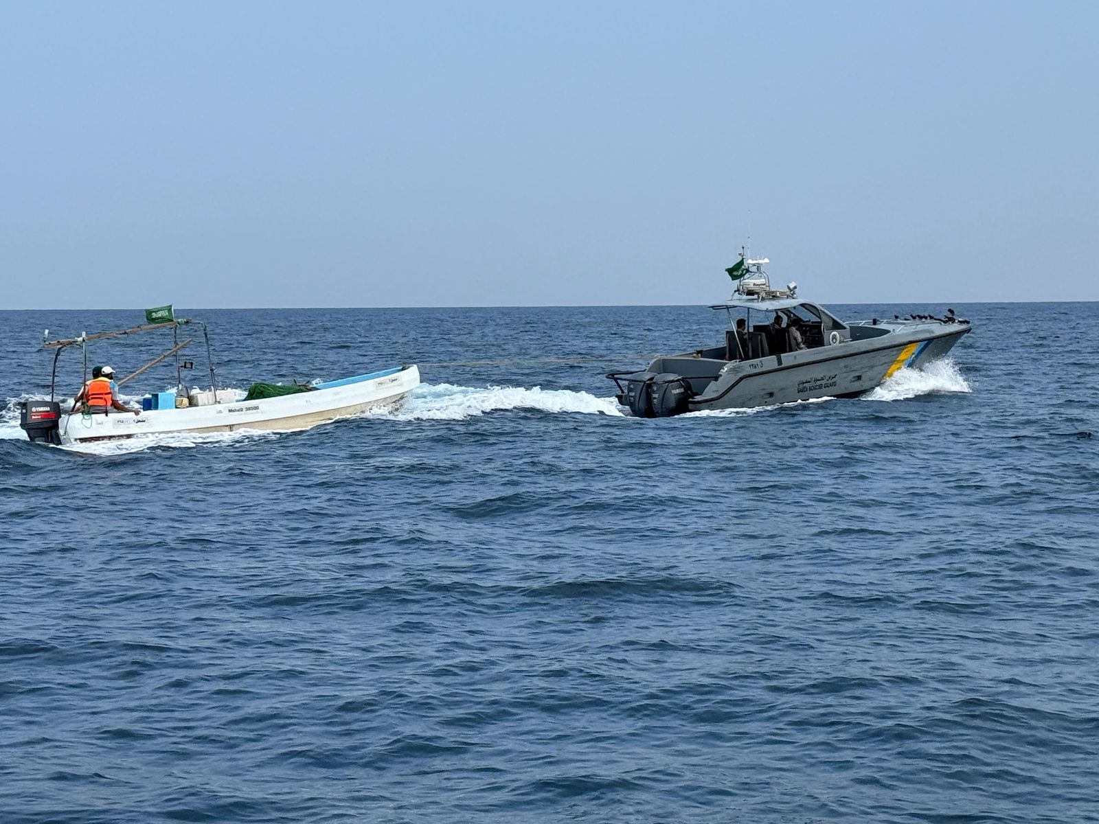 حرس الحدود بمنطقة عسير ينقذ مقيمين تعطلت واسطتهما البحرية في عرض البحر