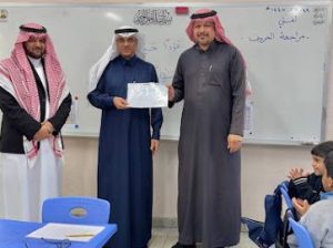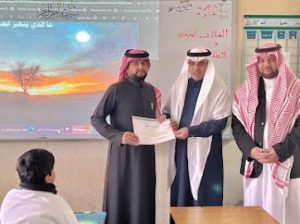 ويكرم طالباً حصل على درجة 100% خلال الفصل الدراسي الأول ويكرم عددًا من المعلمين نظير تميزهم في أدائهم و رفع التحصيل الدراسي للطلاب ويشيد بالجهود المبذولة من قِبل الهيئتين التعليمية والإدارية في المدرسة.