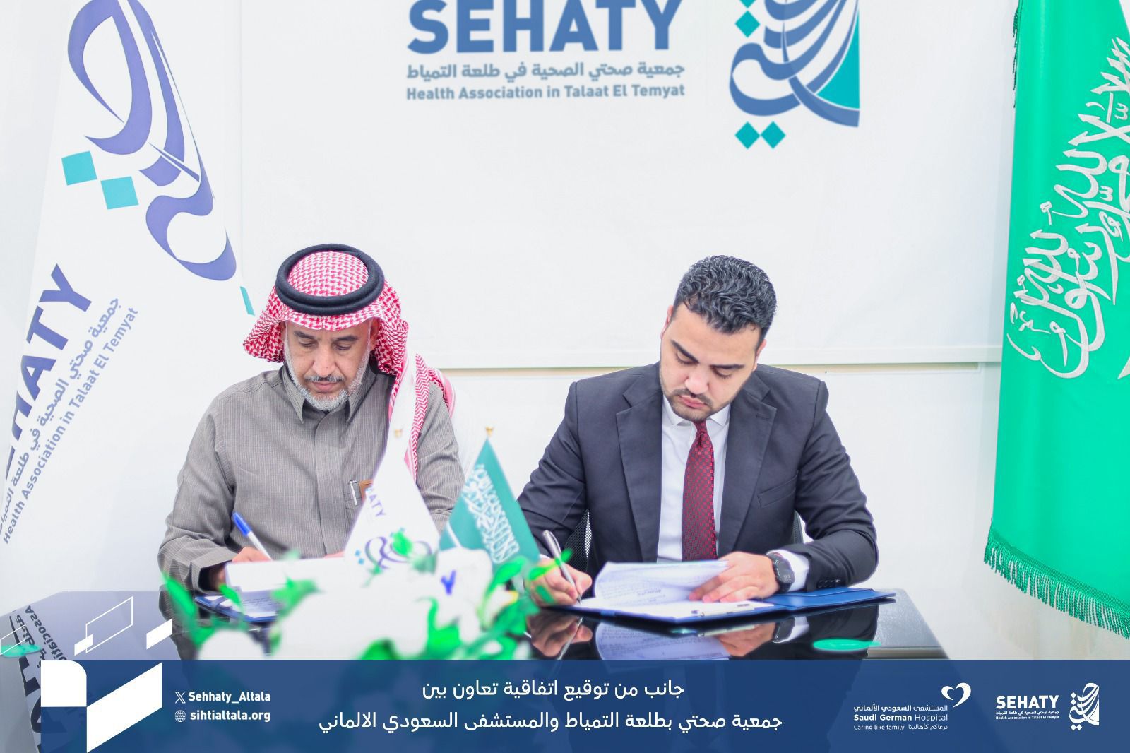 وقعت جمعية صحتي الصحية في طلعة التمياط إتفاقية تعاون مشترك مع المستشفى السعودي الألماني ، في إطار تعزيز الشراكات الصحية وخدمة المرضى المحتاجين للرعاية والعلاج ،وتهدف الاتفاقية إلى تقديم خدمات صحية وعلاجية متكاملة للمستفيدين، بالاستفادة من الإمكانات الطبية المتقدمة والكوادر المؤهلة ذات الكفاءة والخبرة التي يمتلكها المستشفى داخل المملكة .