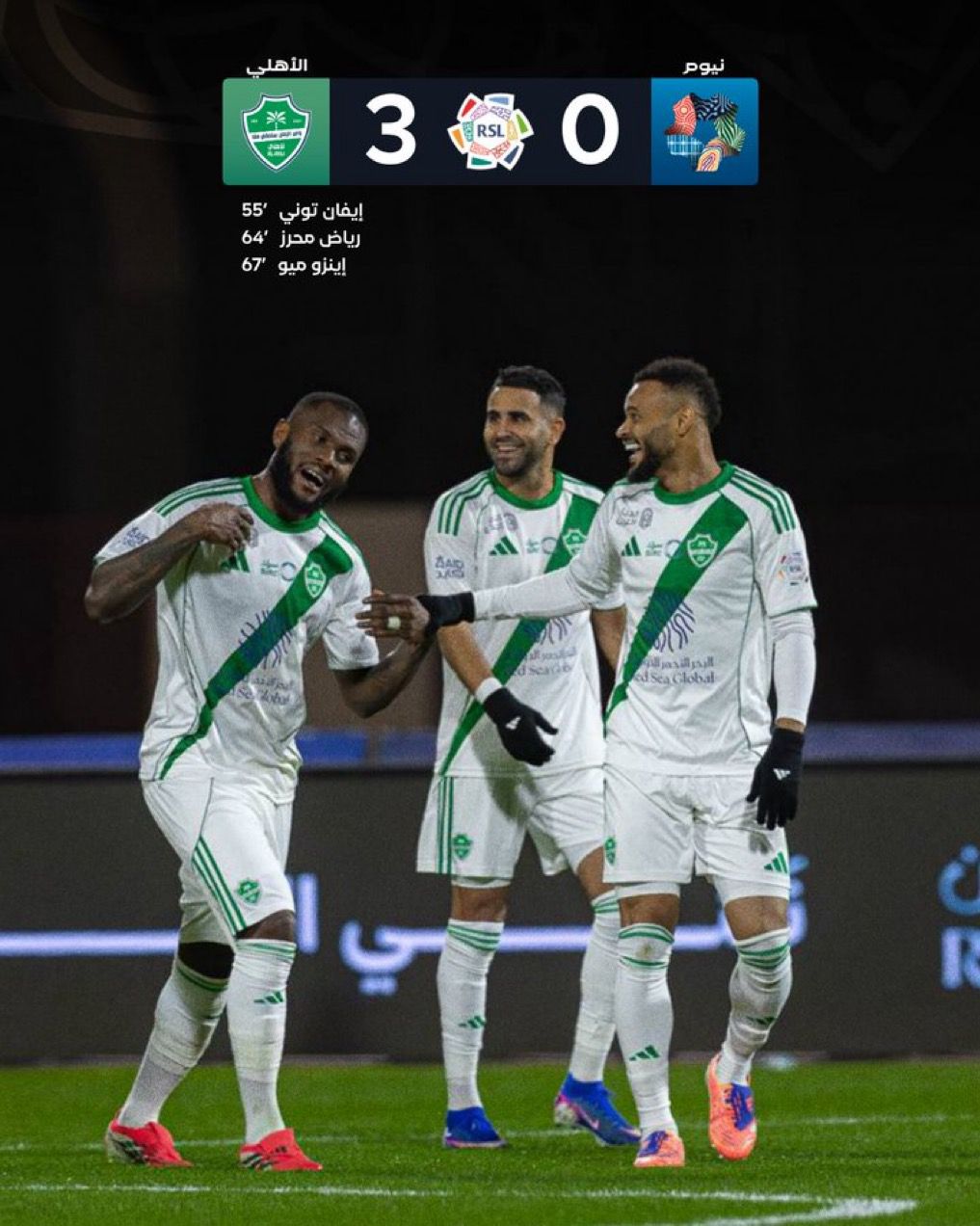 الأهلي يكتسح نيوم بثلاثية ويواصل الضغط على الهلال