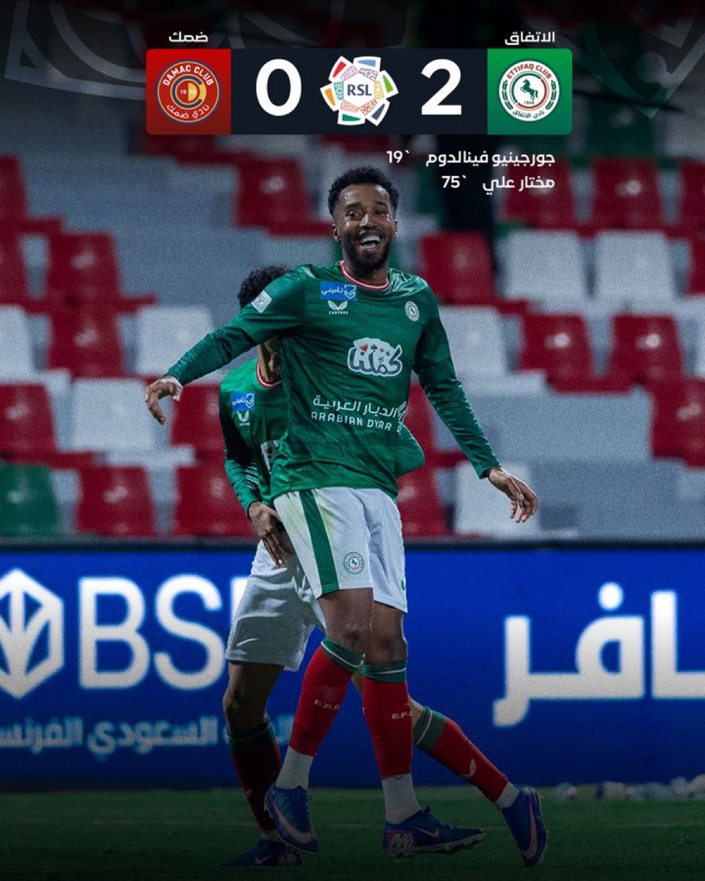 حقق الاتفاق فوزًا ثمينًا على ضمك بنتيجة 2-0، مساء الجمعة، ضمن الجولة الـ21 من دوري روشن .