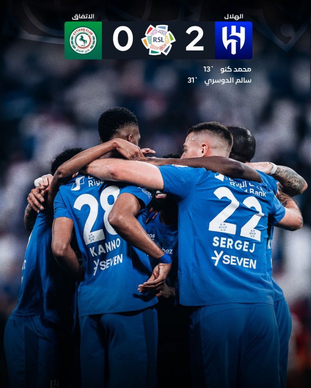 الهلال يتفوق على الاتفاق بثنائية نظيفة