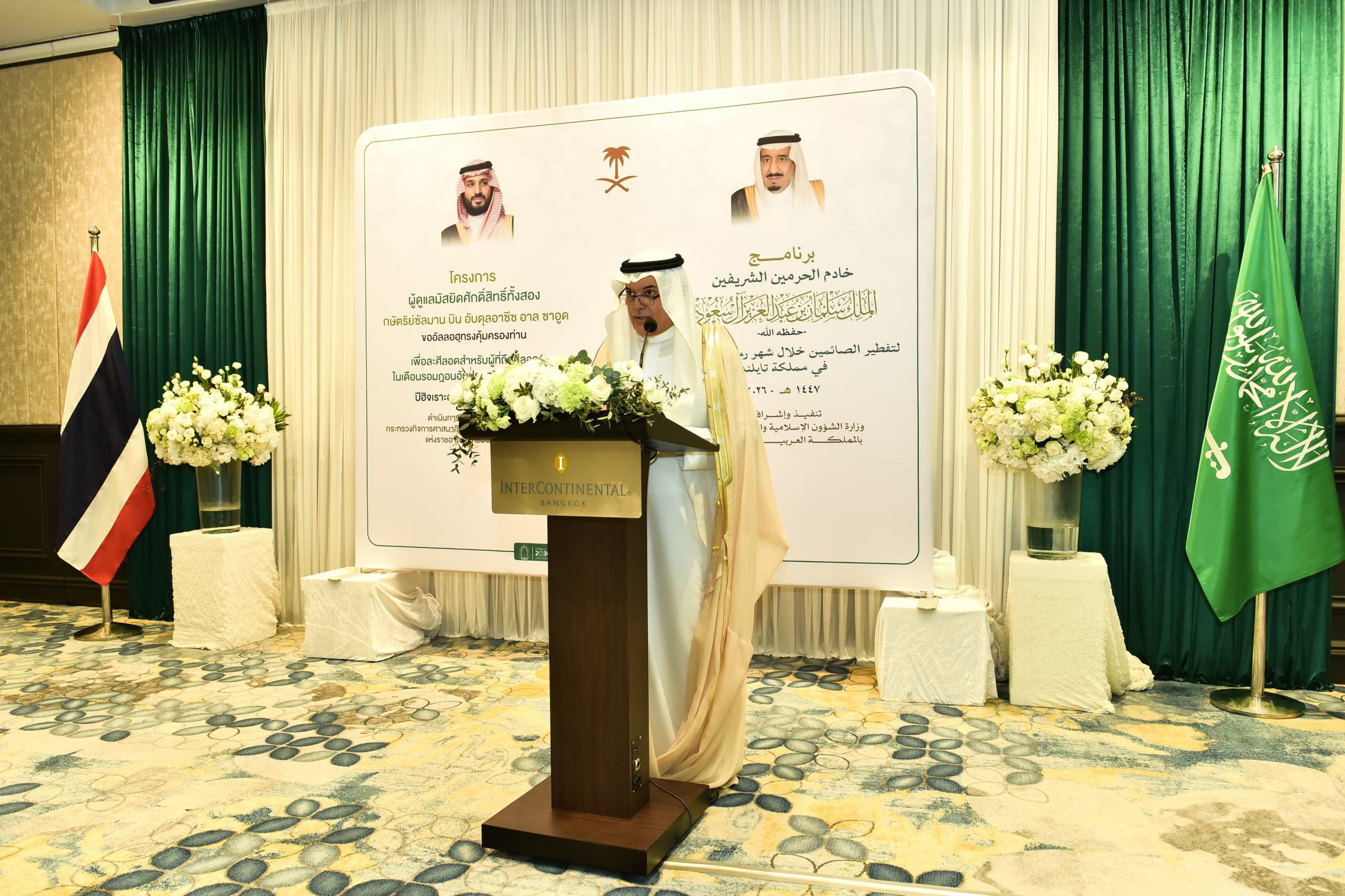 أقامت وزارة الشؤون الإسلامية والدعوة والإرشاد، ممثلةً بالملحقية الدينية بسفارة المملكة العربية السعودية في مملكة تايلاند، حفلاً رسميًا في فندق «الإنتركونتيننتال» بالعاصمة بانكوك، بمناسبة تنفيذ برامج خادم الحرمين الشريفين الرمضانية، التي تشمل: تفطير الصائمين، وهدية التمور الفاخرة، وتوزيع المصاحف الشريفة، وإيفاد الأئمة، وذلك مساء أمس الاثنين 5 رمضان 1447هـ.