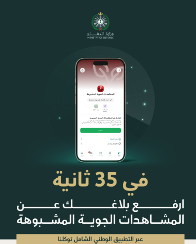 وزارة الدفاع تُطلق خدمة الإبلاغ عن المشاهدات الجوية المشبوهة عبر “توكلنا”