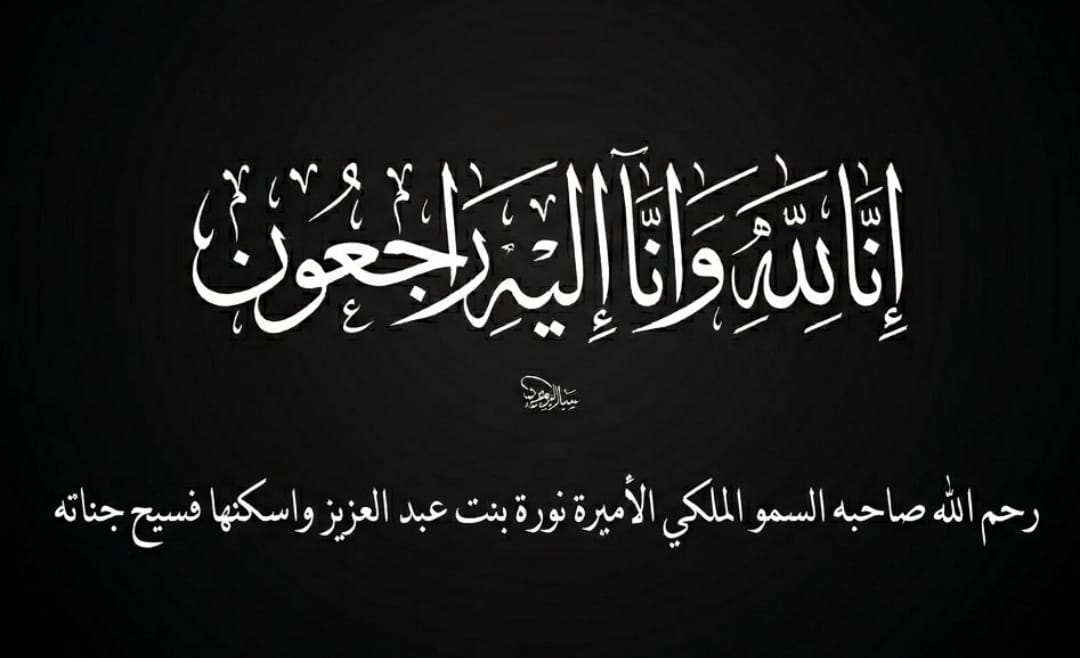 ببالغ الحزن والأسى، وبقلوبٍ مؤمنةٍ بقضاء الله وقدره، تنعى أسرة مجموعة الغد الإعلامية وفاة صاحبة السمو الملكي الأميرة نورة بنت عبدالعزيز بن عبدالرحمن آل سعود، رحمها الله.