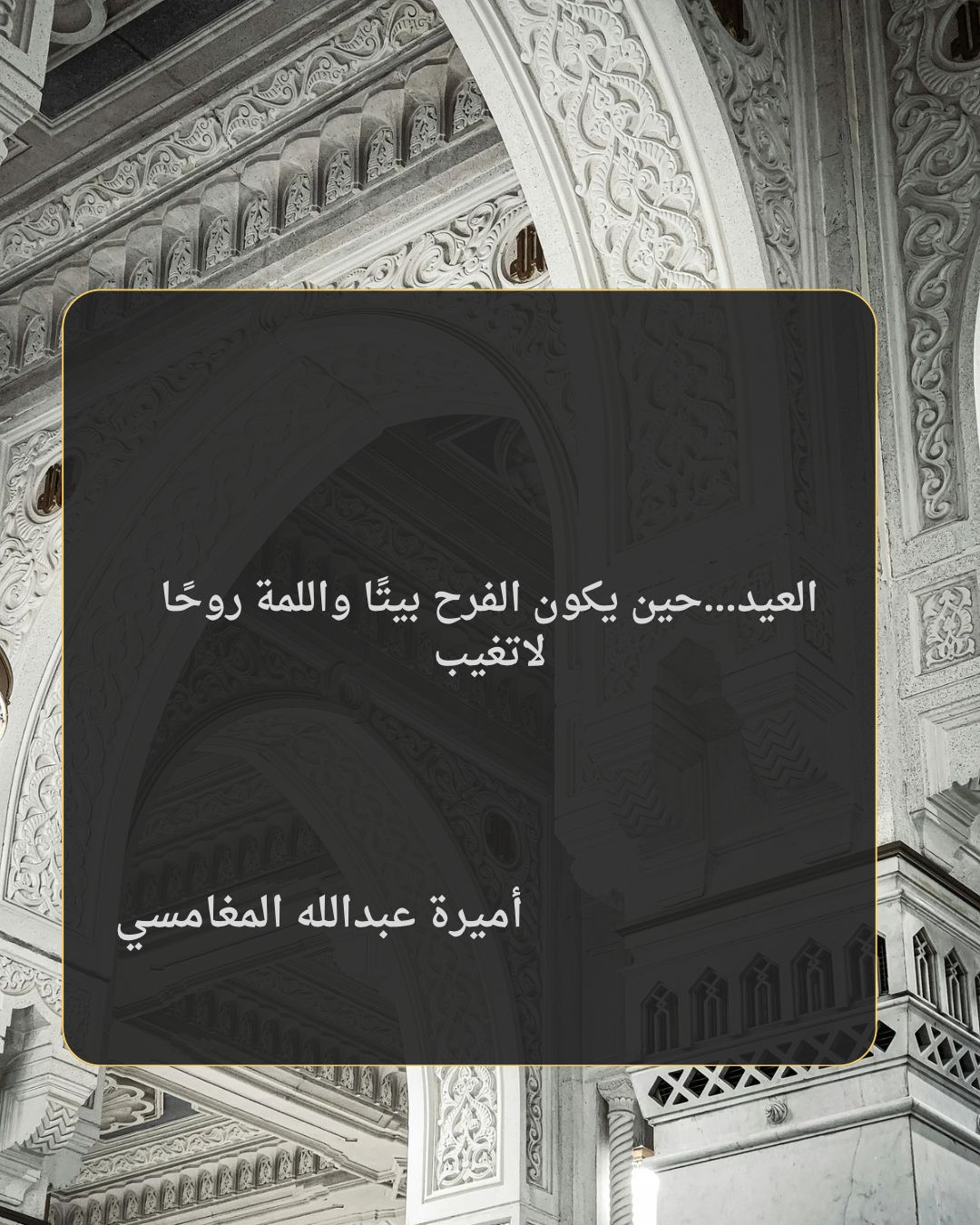 في النهاية، العيد ليس مكانًا بقدر ما هو معنى… فإذا غاب البيت، بقيت القلوب قادرة على أن تبني بيتًا جديدًا من المودة. ومن يُحيي لمّة أهله، فكأنما أعاد للعيد روحه، وللذكريات حياتها، وللمحبة طريقها الذي لا ينقطع.