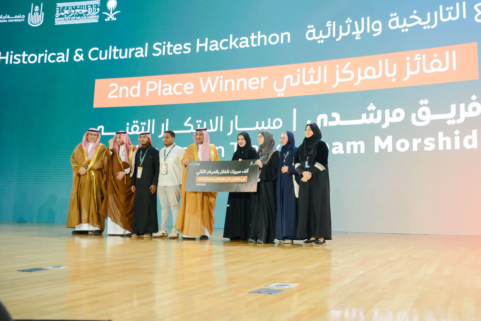 اختتمت جامعة أمِّ القرى بالتعاون مع وزارة الحج والعمرة أعمال هاكاثون المواقع التاريخية والإثرائية في موسمه الثالث؛ والذي انطلق في مطلع شهر مارس 2026م؛ حيث تم تكريم الفرق الفائزة في الهاكاثون؛ بحضور مساعد وزير الحج والعمرة الحسن المناخرة، والرئيس التنفيذي لبرنامج خدمة ضيوف الرحمن م. محمد إسماعيل، وعميد معهد الابتكار وريادة الأعمال في جامعة أم القرى د. غيداء السلمي؛ ضمن الفعاليات المصاحبة لمنتدى العمرة والزيارة الذي نظمته وزارة الحج والعمرة في مركز الملك سلمان الدولي للمؤتمرات بالمدينة المنورة؛ خلال الفترة من: 30 مارس إلى 1 أبريل 2026م؛ بمشاركة واسعة من المبتكرين والمهتمين بتطوير المواقع التاريخية، وتعزيز التجربة الإثرائية لزوارها.