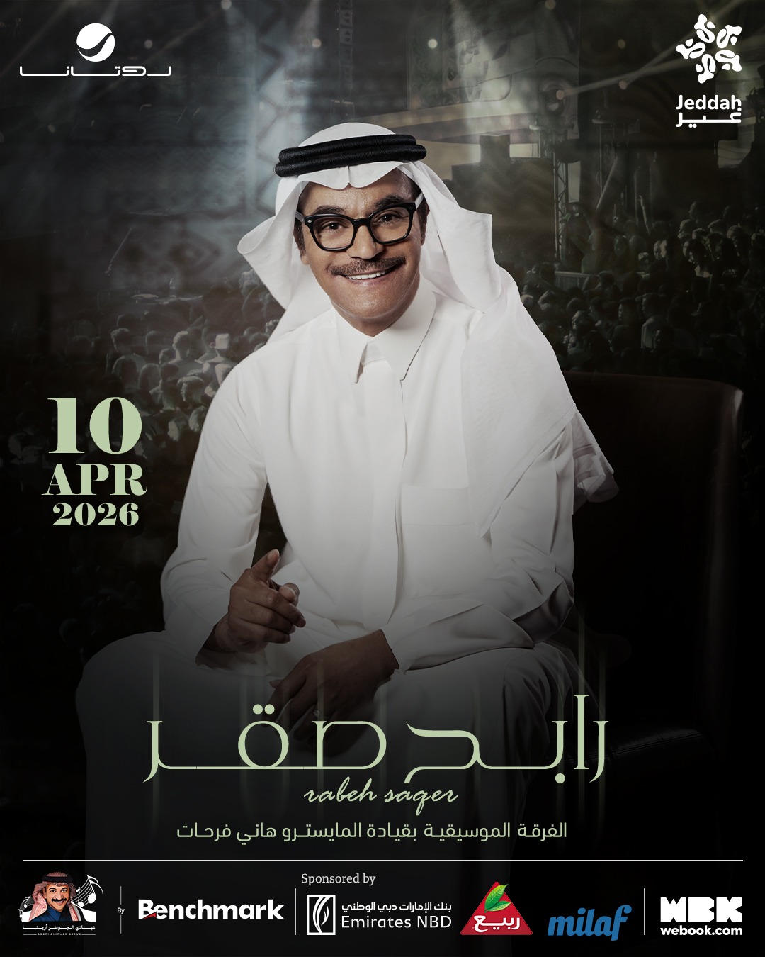 أعلنت “مجموعة روتانا للموسيقى”، التي اعتادت ان تقدم كل ما هو مميز في مجالي صناعة الموسيقى والترفيه ، عن حضورها القوي ضمن فعاليات “موسم جدة” تحت شعار “جدة غير” بحفل ضخم سيحلق فيه “صقر الغناء” النجم الكبير رابح صقر بصوته وموسيقاه واغانيه الشهيرة على مسرح “عبادي الجوهر أرينا” لجمهور “موسم جدة” تاريخ 10 أبريل 2026 ويأتي هذا بعد نجاحات عدة قدمها “بوصقر” مع روتانا في “موسم الرياض” وما تلاها من حفلات العيد وحضور مدهش في عدة دول قدّم فيها حفلاته ، وسيقود فرقته الموسيقية الكبيرة المايسترو هاني فرحات.