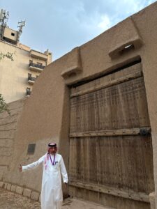 وتوجّه الفريق بعد ذلك إلى بوابة الثميري، إحدى أبرز بوابات سور الرياض القديم، حيث تعرّف المتدربون على دورها التاريخي في حماية المدينة وتنظيم الحركة داخلها، إلى جانب أهميتها كأحد الشواهد العمرانية الباقية التي تعكس هوية الرياض التاريخية.